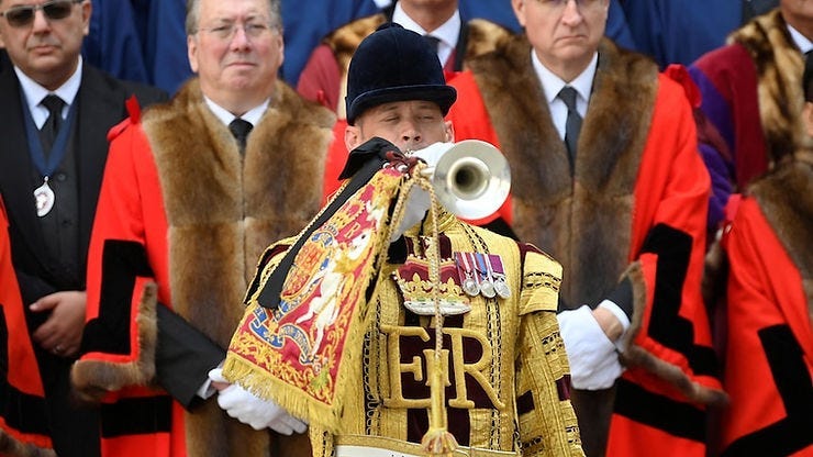 This is a very ancient procedure and one that is resonant in a world without media. This was how news was delivered — from the Crown to the people.